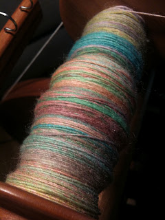 Pretty, eh? I am really enjoying the plying of these two singles and seeing how the bands of colors are matching up. The plan is to finish this yarn over the weekend, which should be a very satisfying task.